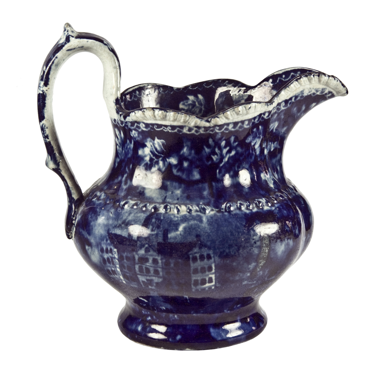 This is Stevenson's version of this institution. See the Clews version in this exhibit for details regarding the history of this structure. Notice the Gadrooned white edging. This would have had a wash pitcher with this water pitcher.