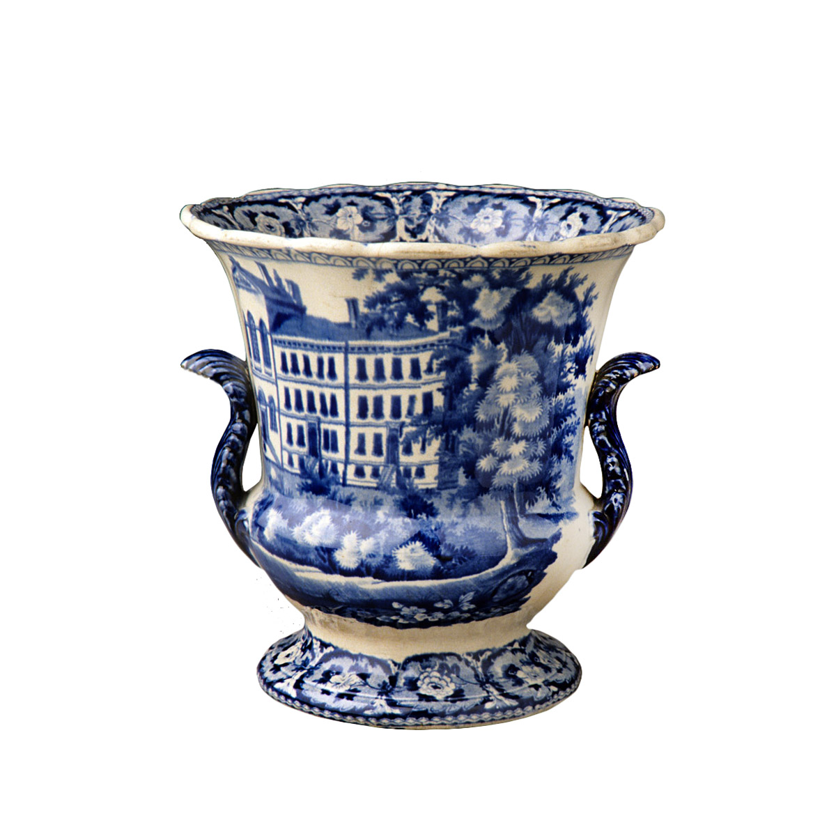 This most rare and unusual Flower Container, or Flower Vase shows the Alms House (Poor House) in Boston, Massachusetts.
