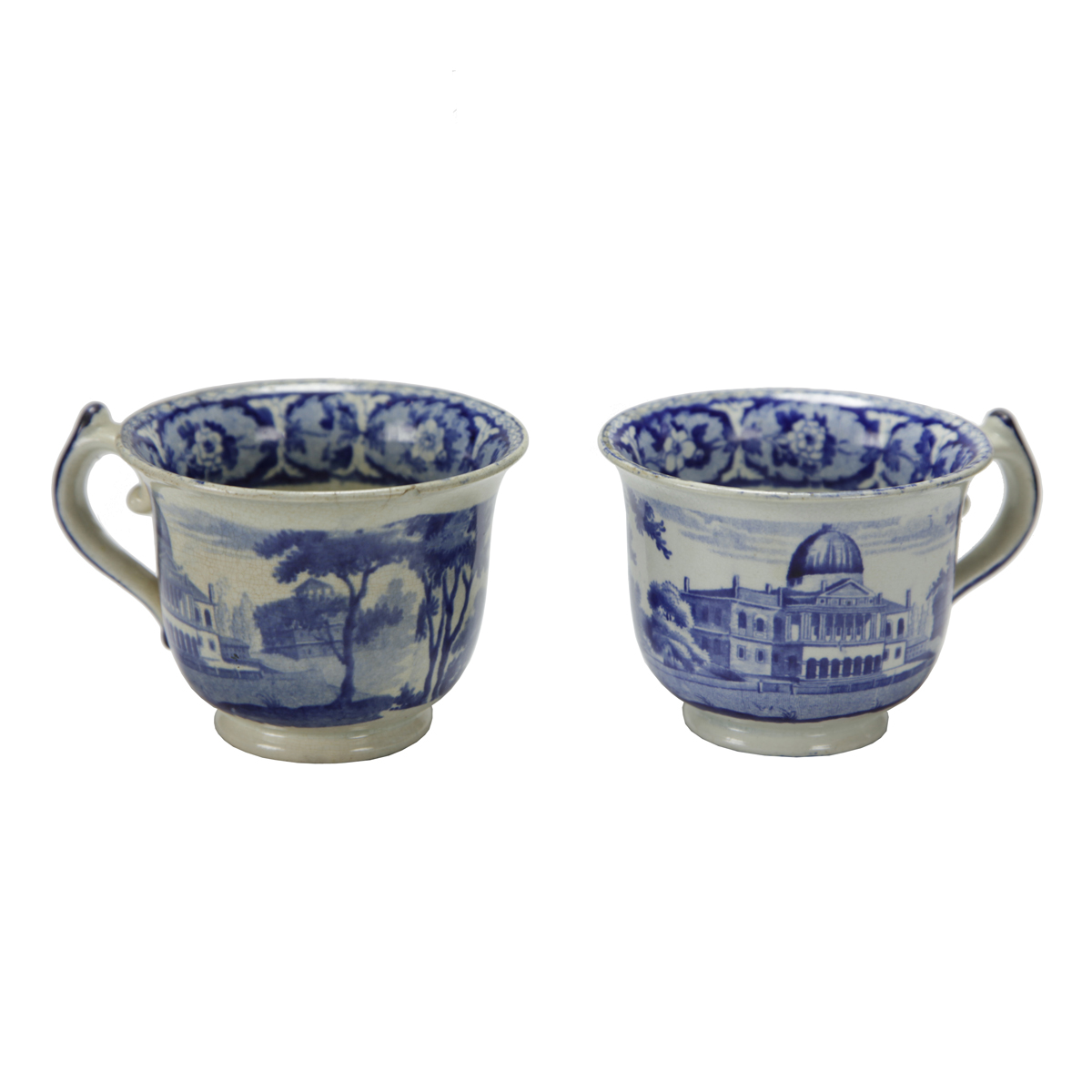 This image is of the same custard cup seen from two sides. It is printed with Ridgway's version of the Boston State House pattern.