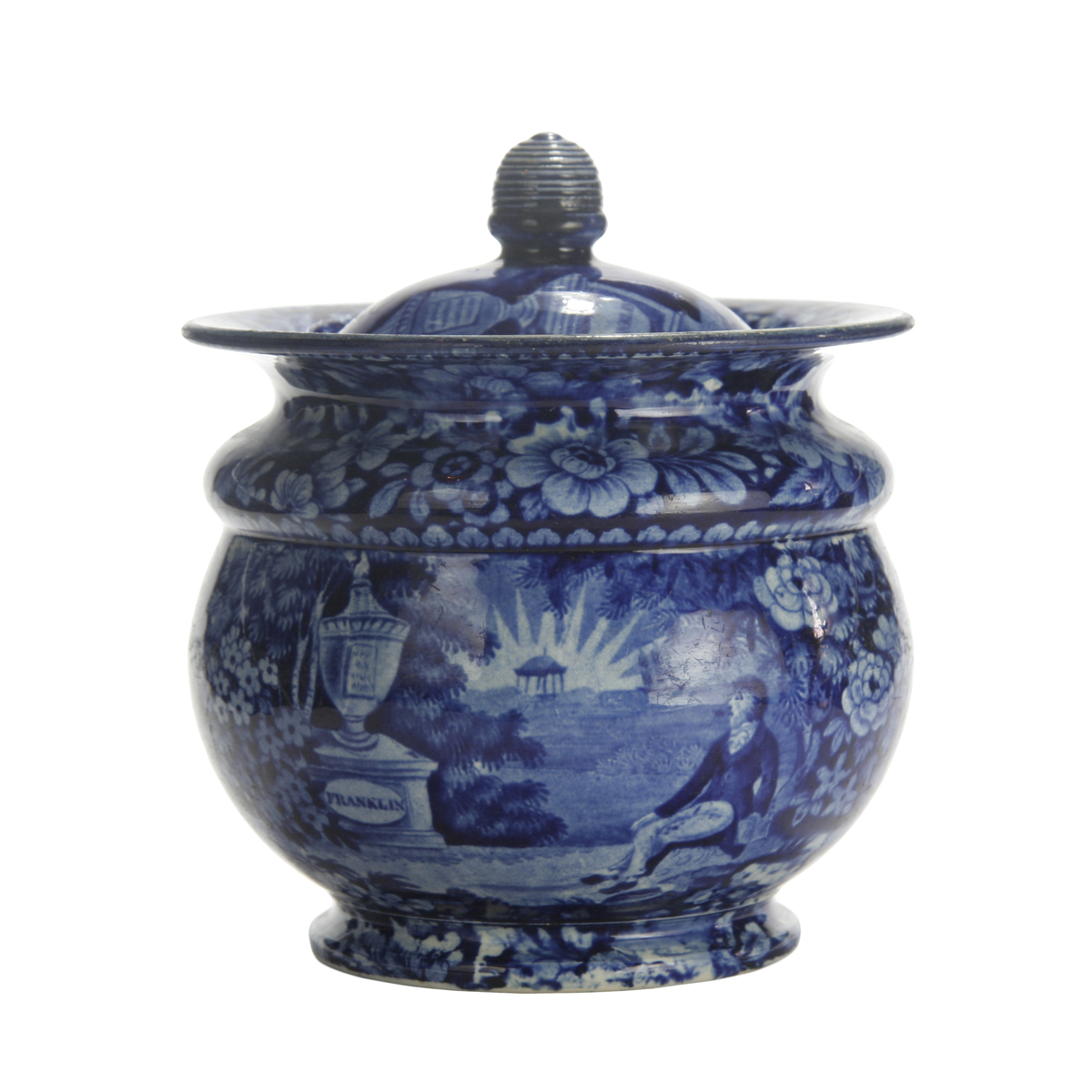 This round bowl with beehive finial is one of two sugar bowl forms known with this pattern.