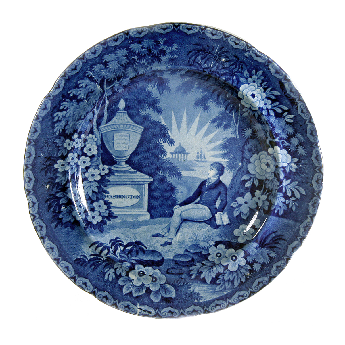 Pattern Name: La Fayette at Washington's Tomb Pattern Category: Heraldic and Commemorative Object Type: Dinner and Dessert Wares Description: