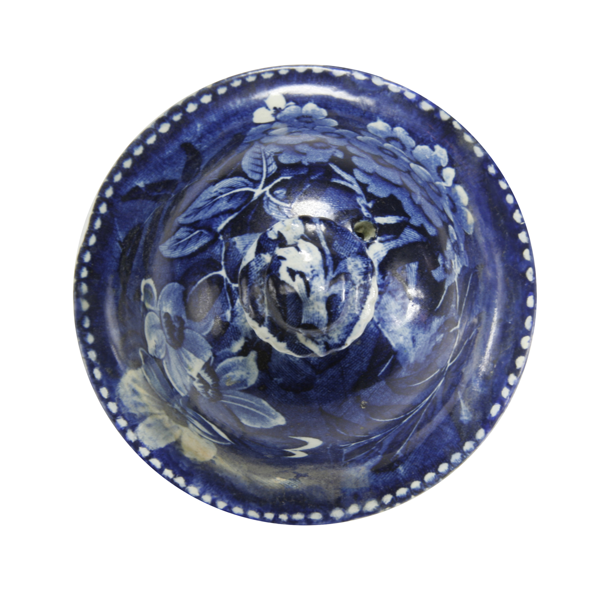 This lid belongs to a round suace or gravy tureen on a pedestal base; the basic Clews shape can be seen in a sauce tureen with America and Independence #14, and also with the Peace and Plenty pattern.