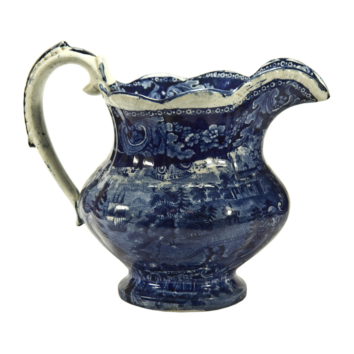 This is one of at least four pitcher shapes on which this view is found. It is noted exclusively on pitchers in sizes ranging from 9 to 9.5 inches, 8 to 8.5 inches, 6 to 7 inches, and 4.5 to 5 inches.