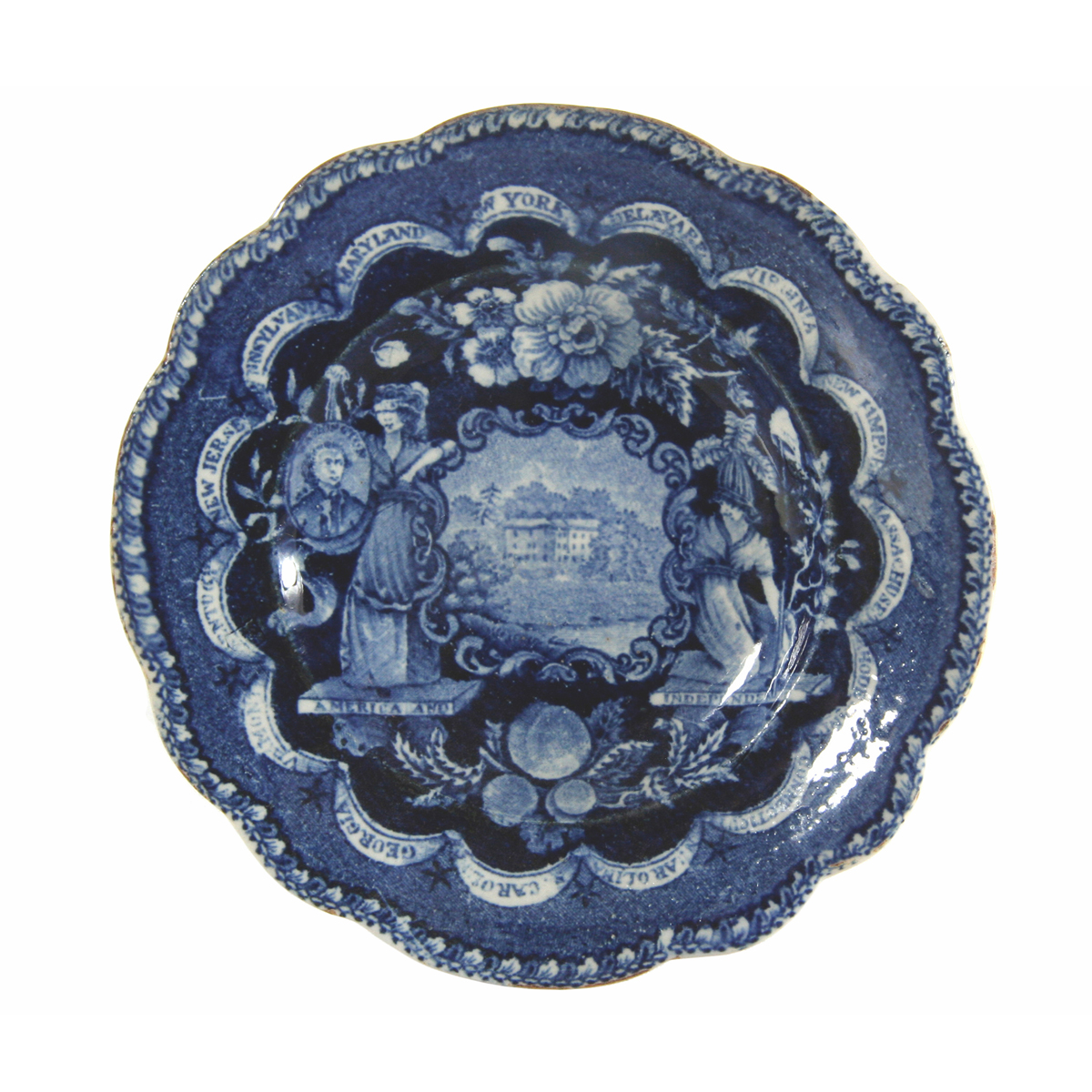 This small plate is the only version of this view known with a full border. There is also a cup plate, measuring 3.5 inches, with a partial border (no states' names appear).