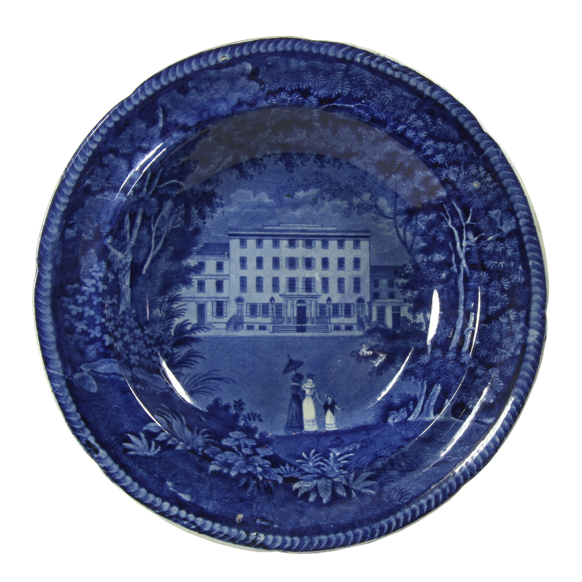 The title mark, commonly appearing on the back of plates and soup bowls (as here), has not been identified as to maker. Shown here on this soup bowl, the United States Hotel, in Philadelphia, stood opposite the United States Bank on Chestnut Street. It was opened in 1826 and operated for about 30 years, then was purchased by the Bank of Philadelphia.