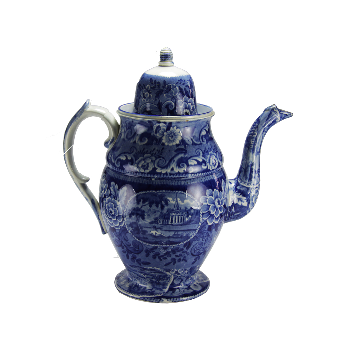 There are several versions of the coffee pot in this pattern, most with upside down images in addition to the right side up image of the church.