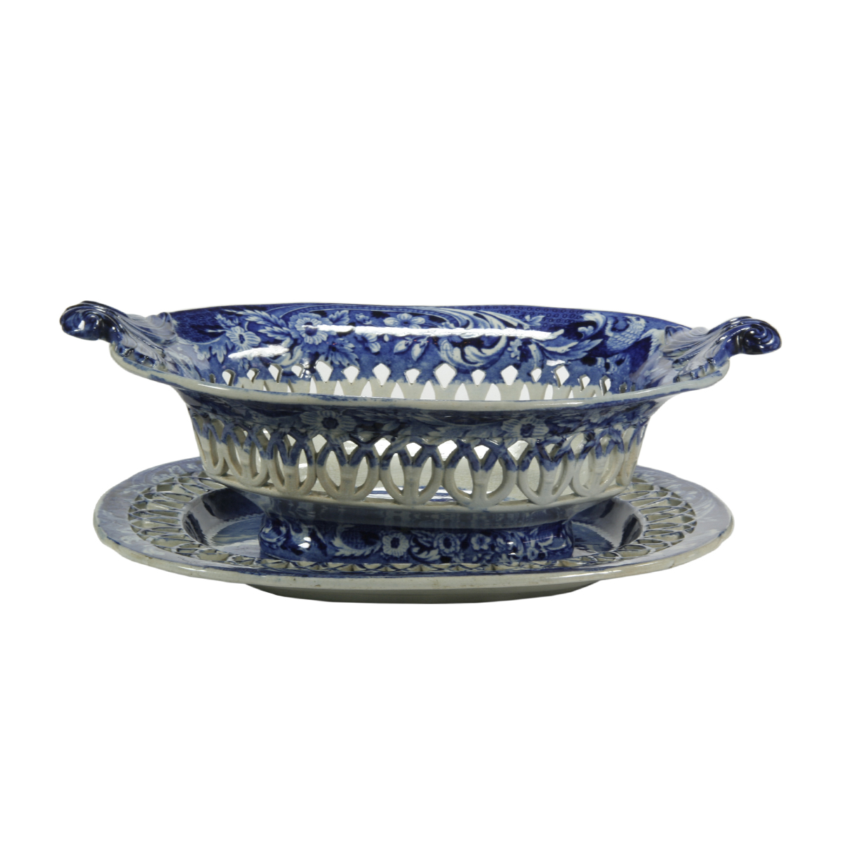 Exibited here is a pierced basket and accompanying tray.
