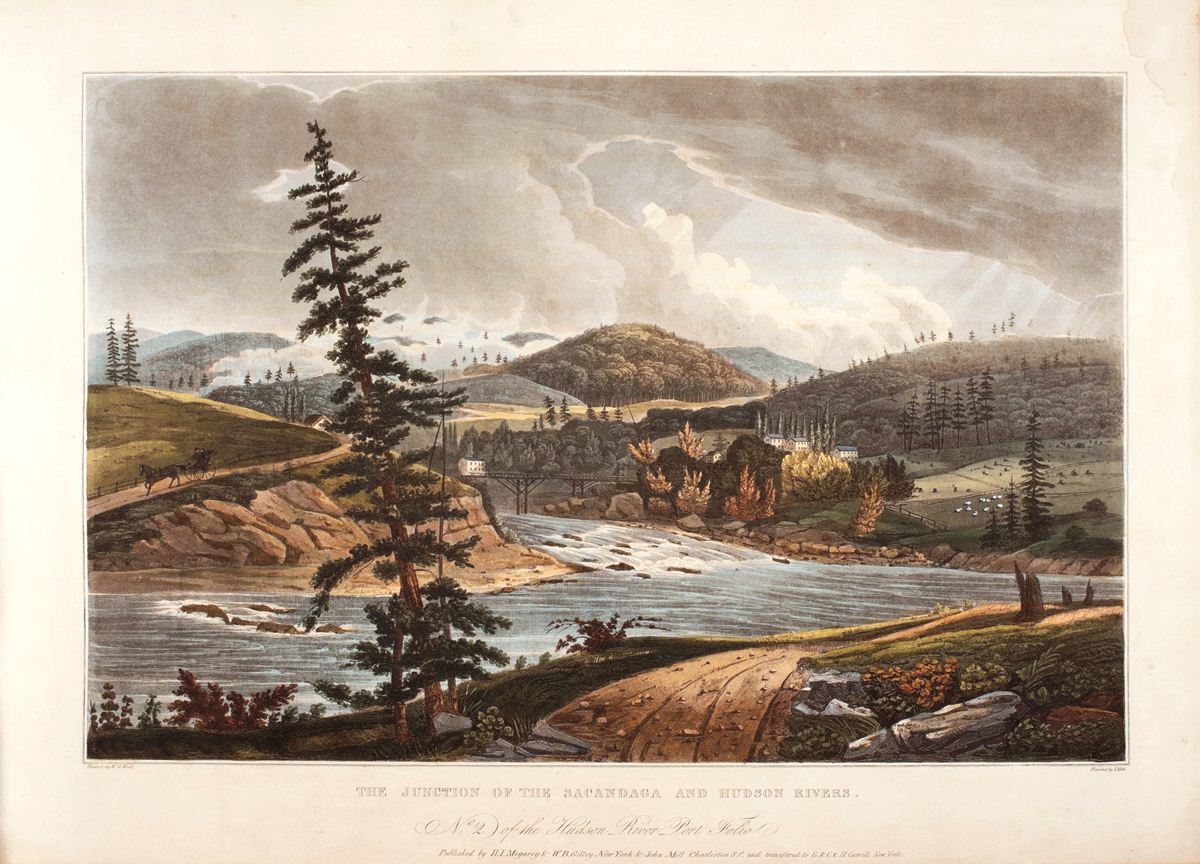 Colored aquatint inscribed, THE JUNCTION OF THE SACANDAGA AND HUDSON RIVERS. No2 of the Hudson