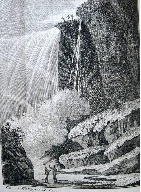 Print based on an original watercolor by Pavel Petrovich Svin'in, published in "Opyt zhivopisnago puteshestviia po sievernoi amerikie (An Illustrated Description of a Picturesque Journey through North America)", St. Petersburg, Russia in 1815 by F. Drekhslera. The image is noted in Russian, "drawn from nature, P. Sv[in'in]"