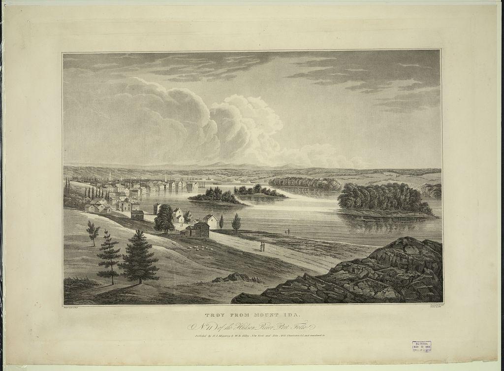 Number 11 in the Hudson River Valley series, Henry Megeary and W. B. Gilley published this view of Troy, New York between 1825 and 1830 after a painting by William Guy Wall. Engraved by John R. Smith and John Hill.