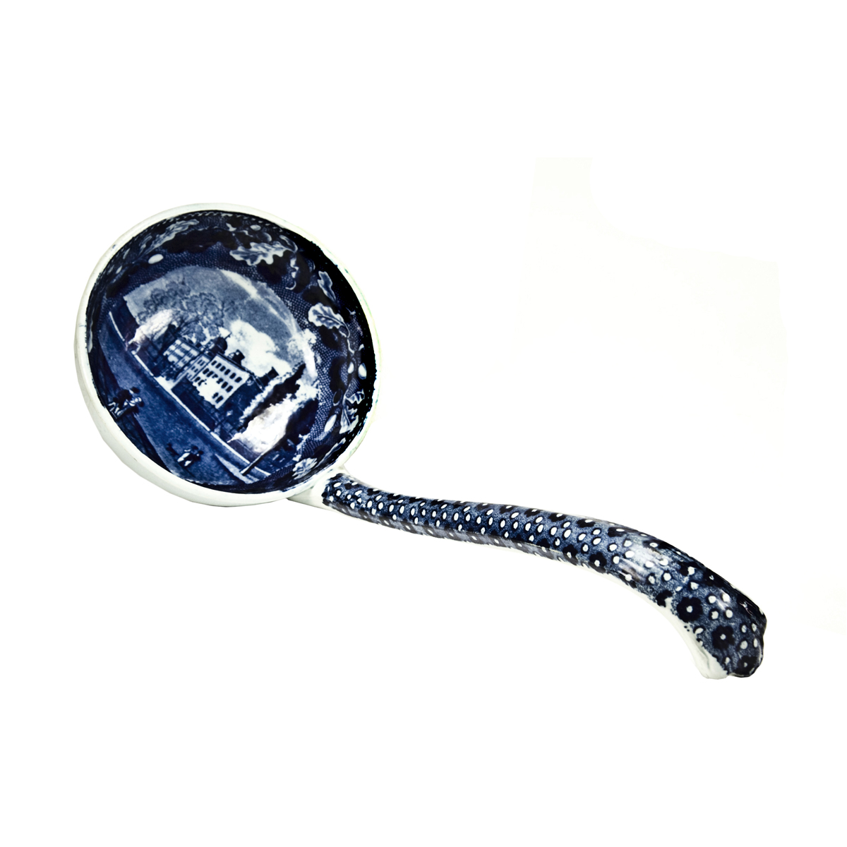 Shown here on a soup ladle, this appears to be an unrecorded form for this view. There are various forms of single medallion plates with this center view, and the Erie Canal inserts. It is also known on 7.5 and 6.5 inch plates with the regular Acorn and Oak Leaves Border used here.