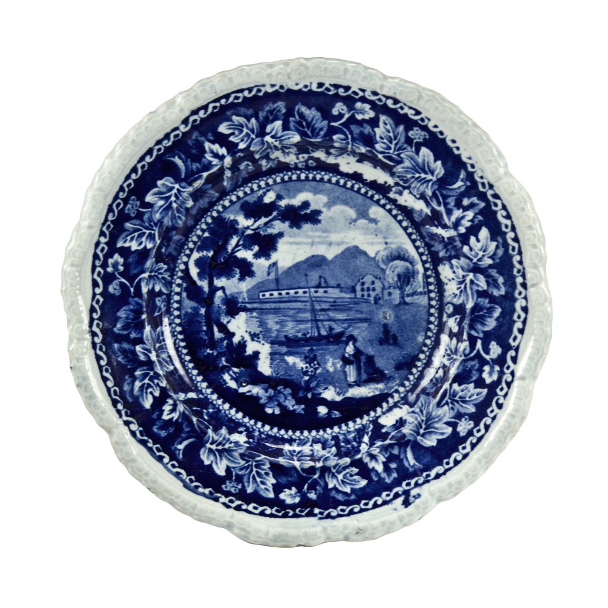 The view on this plate is known on plates measuring 7 and 5.25 inches, also a 4.5 inch cup plate, a ladle, and the lid to a coffee pot.