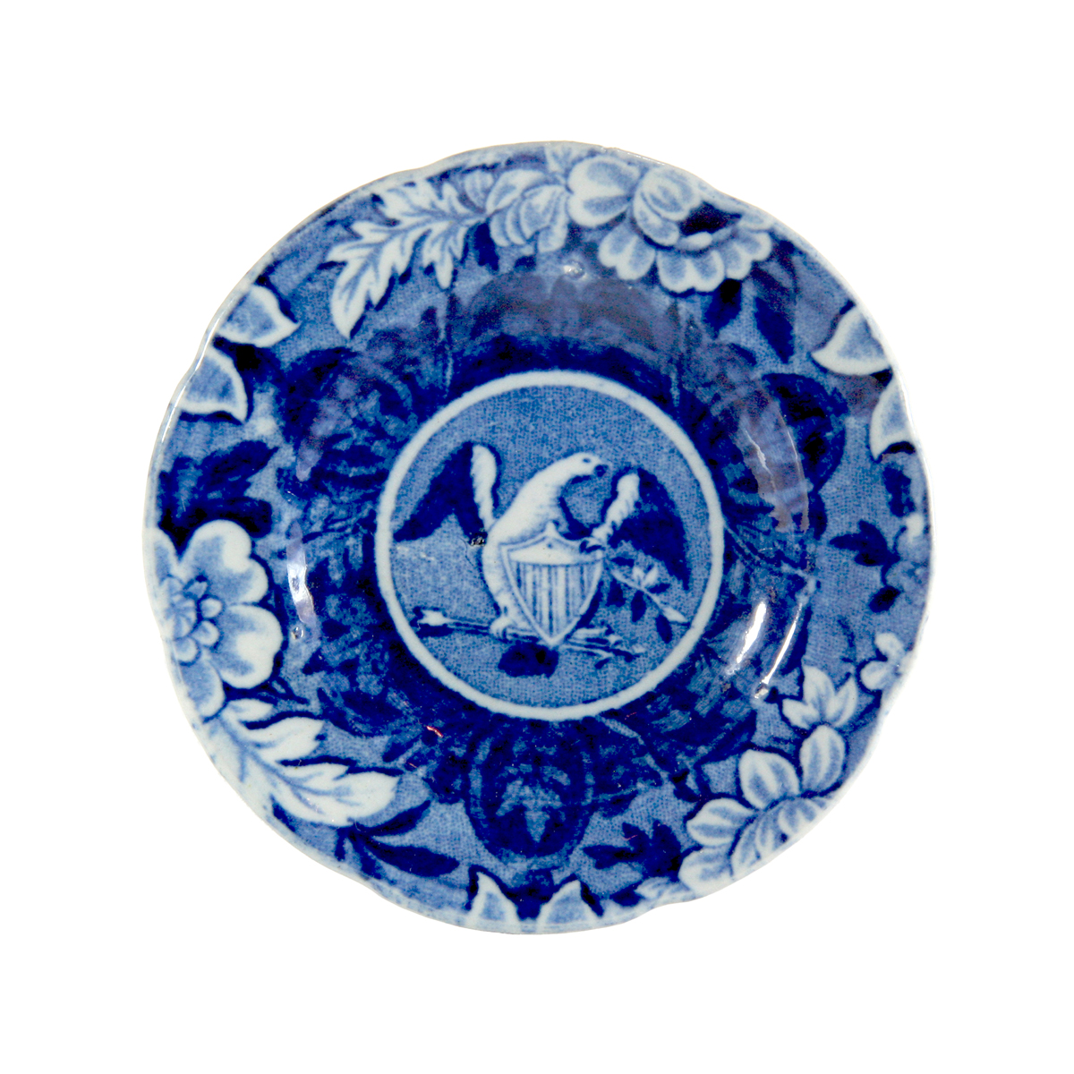 This cup plate shows the central seal surrounded by the foliage appearing around it. It is the smallest of the pieces with this design.